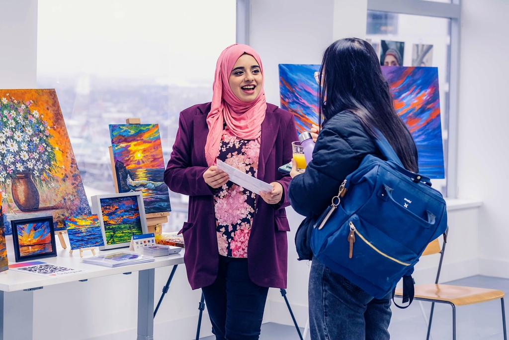 Mahnoor, widely known as Noori, is an award-winning contemporary artist celebrated for her bold use of texture, colour, and emotion-driven compositions. Based in Birmingham’s Jewellery Quarter, she balances her full-time career as an accountant with her deep-rooted passion for art, which allows her to de-stress and reconnect with her creativity.