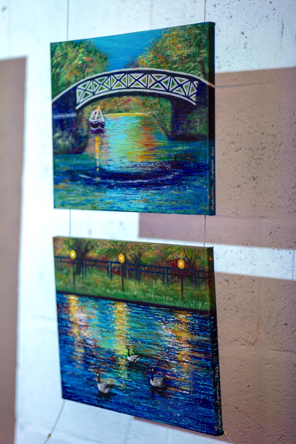 Noori’s art is defined by her mastery of textured acrylic techniques, often employing palette knives and thickening mediums to add depth and dimension. Inspired by serene landscapes, cinematic storytelling, and the emotional resonance of colour, she creates pieces that invite viewers into moments of nostalgia and reflection.