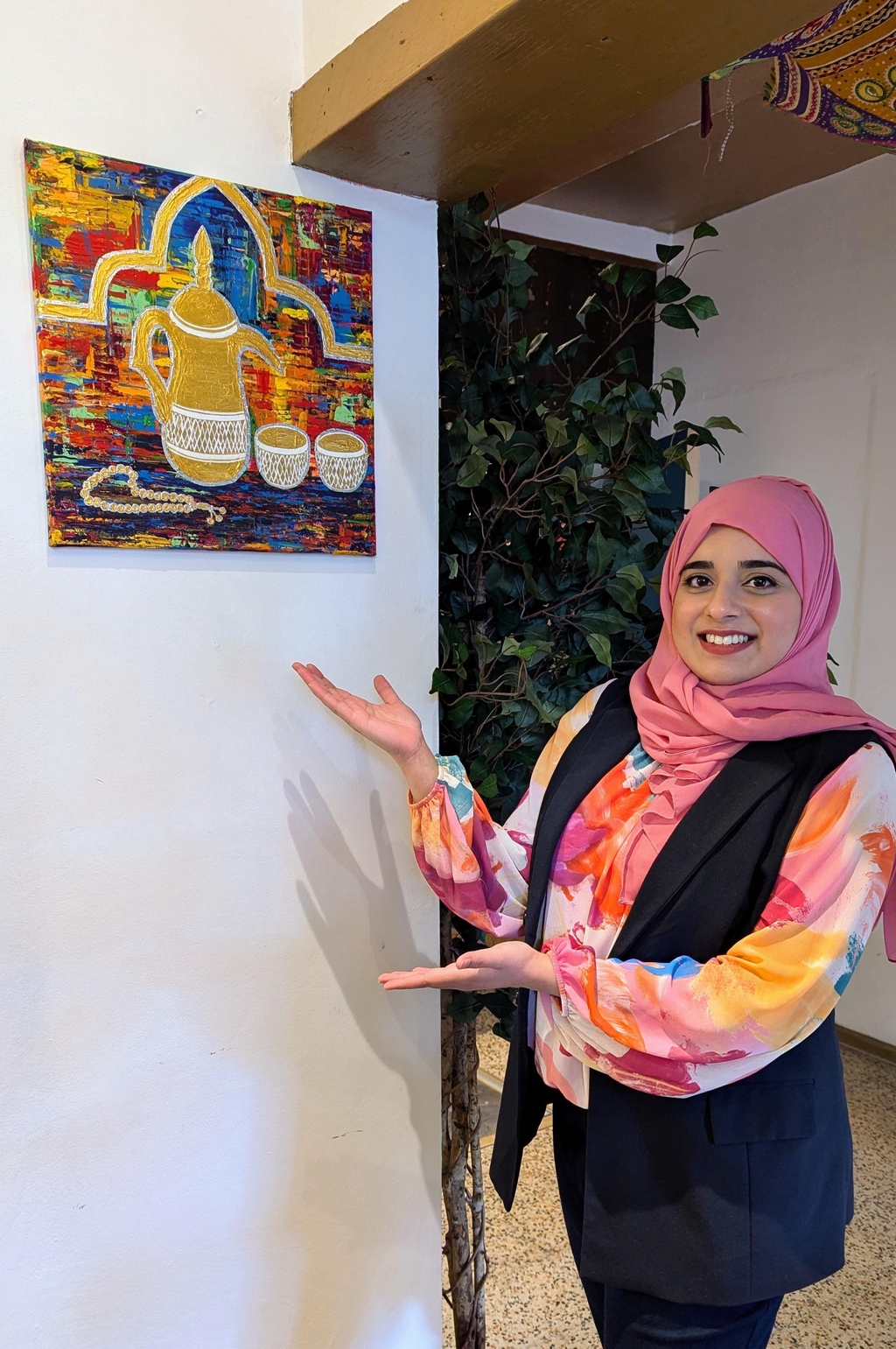 Her multicultural upbringing - born and raised in Qatar with Pakistani heritage before settling in the UK, plays a vital role in shaping her artistic voice. This diverse cultural lens allows her to weave elements of identity, memory, and storytelling into each painting.
